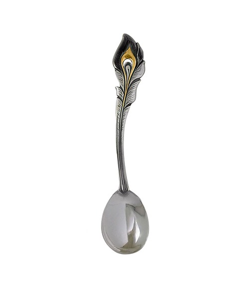 Серебряная чайная ложка "Перо" с позолотой с чернением. Длина – 13.3 см., ширина - 2.8 см. Артикул: CLS0096