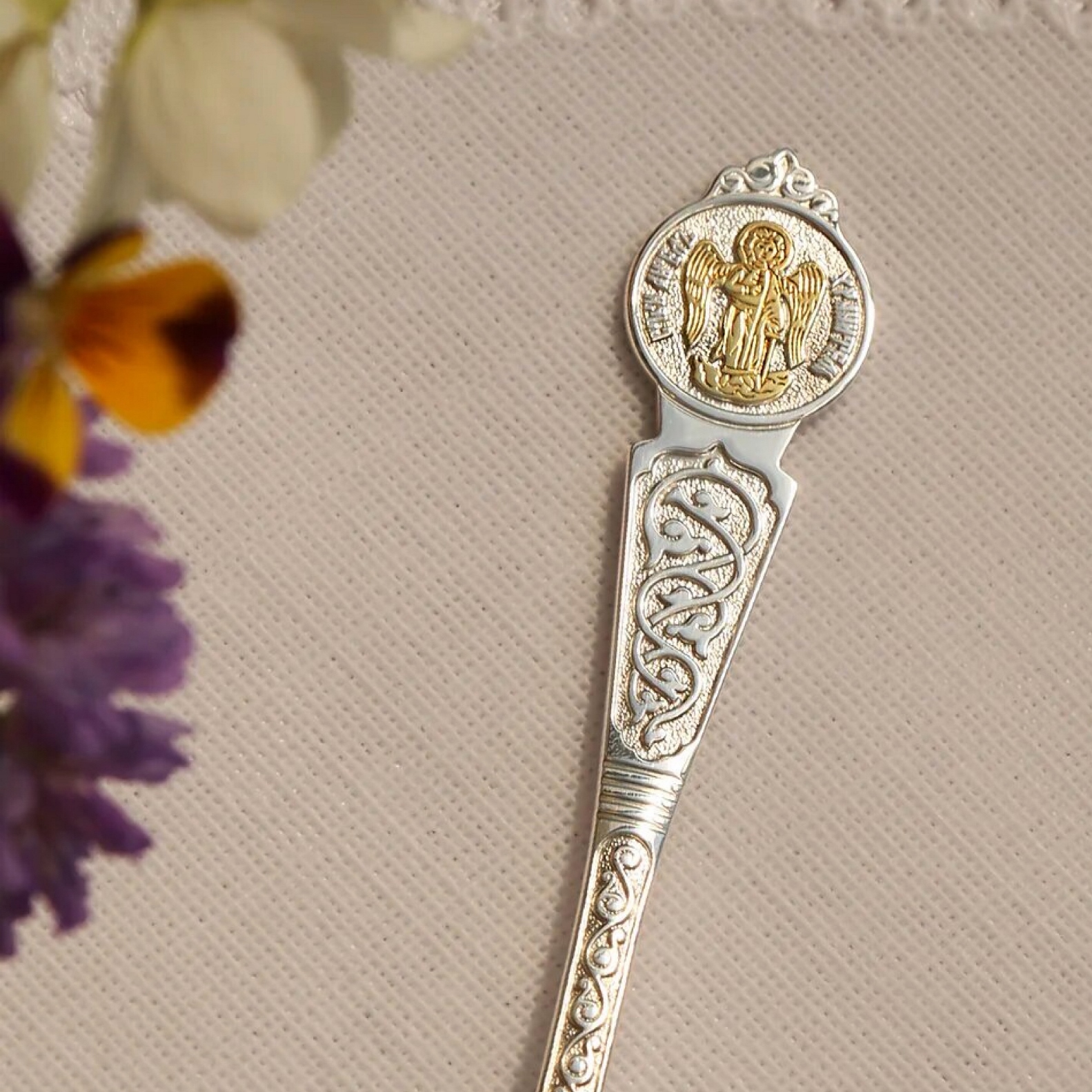 Серебряная ложка «Ангел-Хранитель» с позолотой