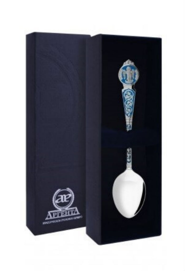 Серебряная ложка «Ангел-Хранитель» с синей эмалью
