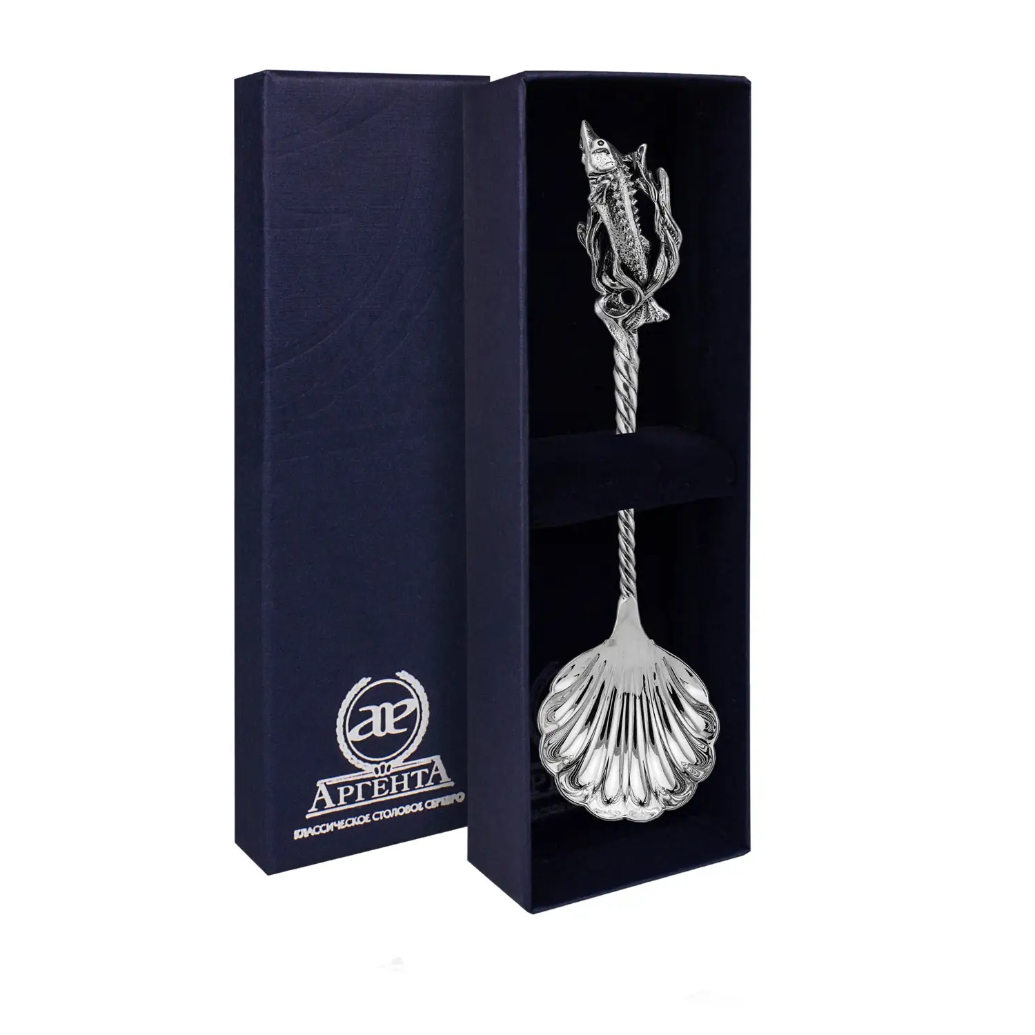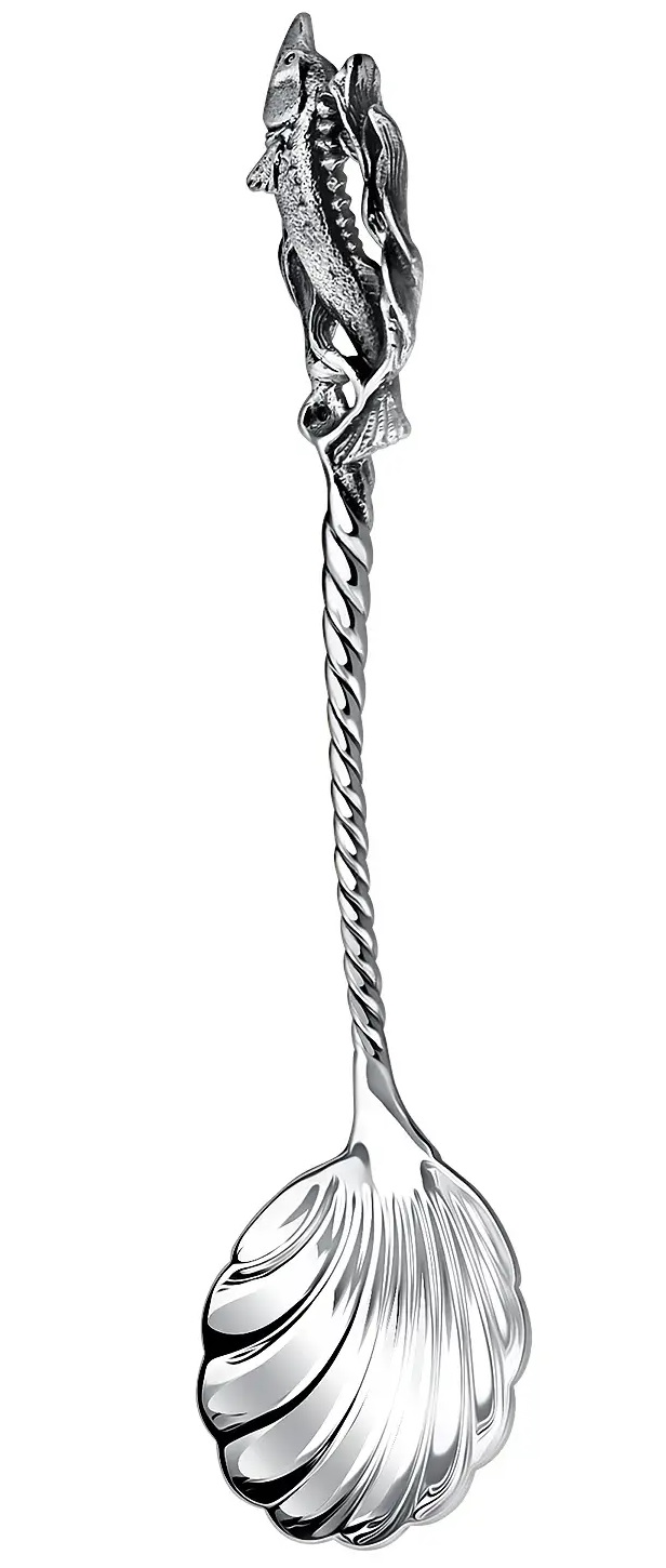 Серебряная ложка для икры «Осетр» с чернением