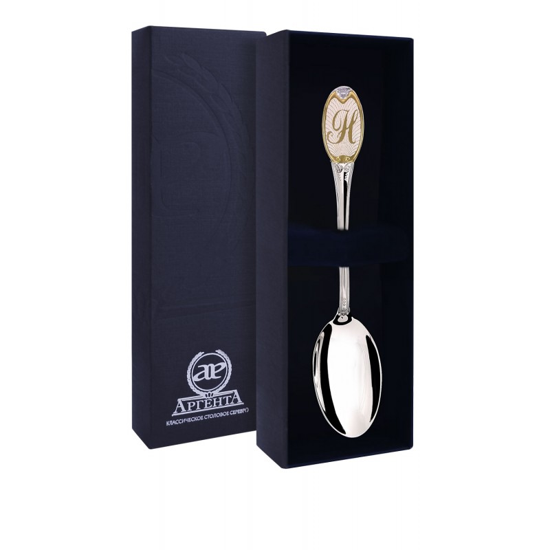 Серебряная ложка с буквой «Н» и позолотой