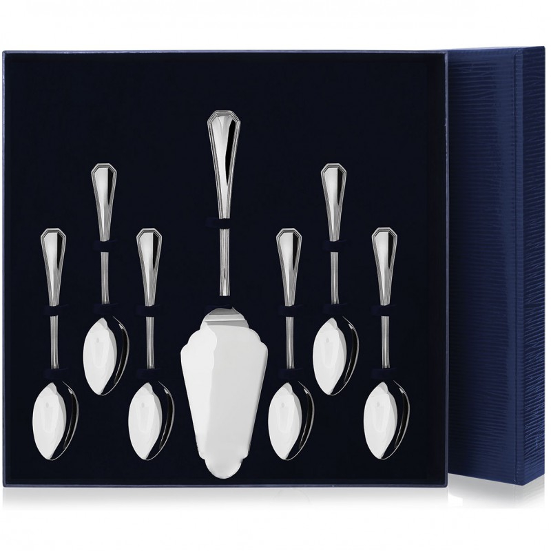 Серебряный набор для десерта "Элегант" №1 станет потрясающим подарком для коллег и родных. Столовое серебро олицетворяет аристократичность и высокий социальный статус - таким образом, представленный набор придаст Вашему столу изысканный и дорогой вид. В синем элегантном футляре располагаются чайные ложки, а также удобная лопатка для тортов.