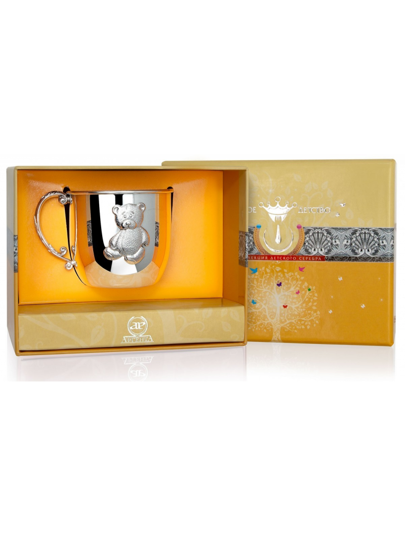 Серебряная детская кружка "Мишка". Ширина: 6.5 см. Высота: 6.0 см. Объем: 150 мл. Артикул: CDK0004