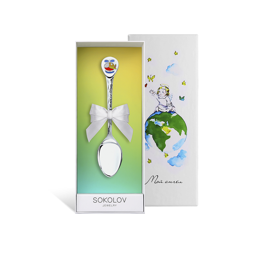 Серебряная детская ложка "Вертолетик". Длина – 12.5 см., ширина - 2.5 см. Артикул: CDL0120