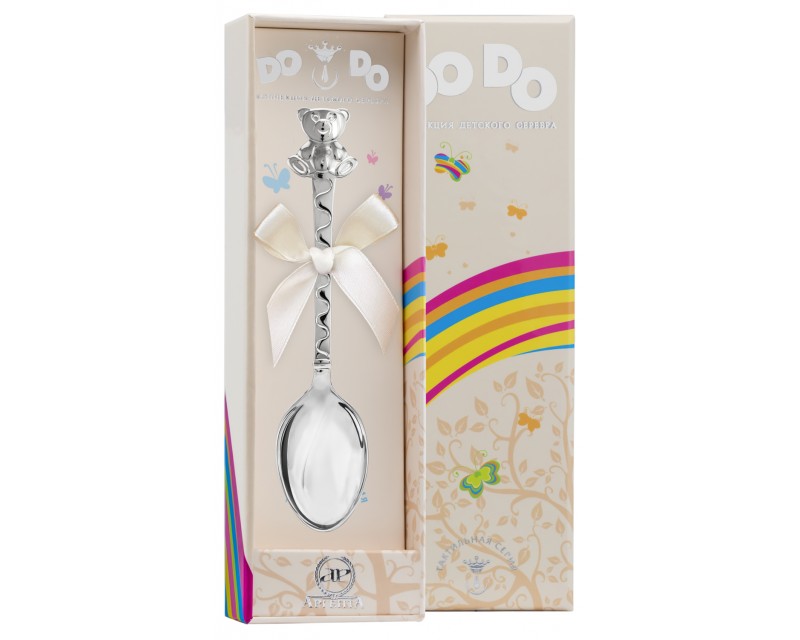 Серебряная детская ложка DO-DO "Медведь". Длина – 12.5 см., ширина - 2.8 см. Артикул: CDL0078