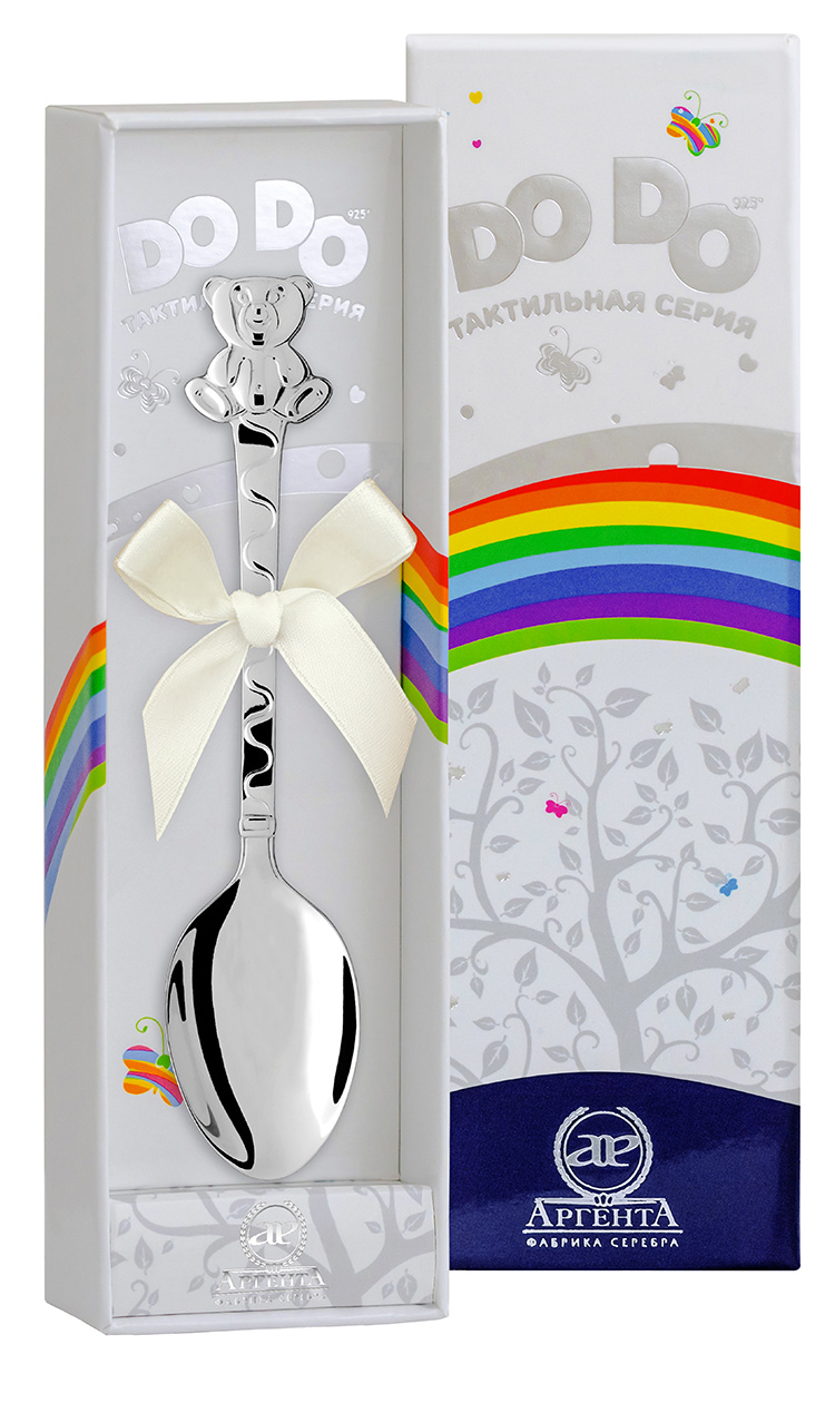 Тактильная серия DO DO разработана с учётом особенностей развития ребёнка с самого раннего возраста и является важным и полезным инструментом для родителей. Серебряные ложки этой серии имеют специальный рельеф, который через тактильное восприятие развивает мышление и речь.