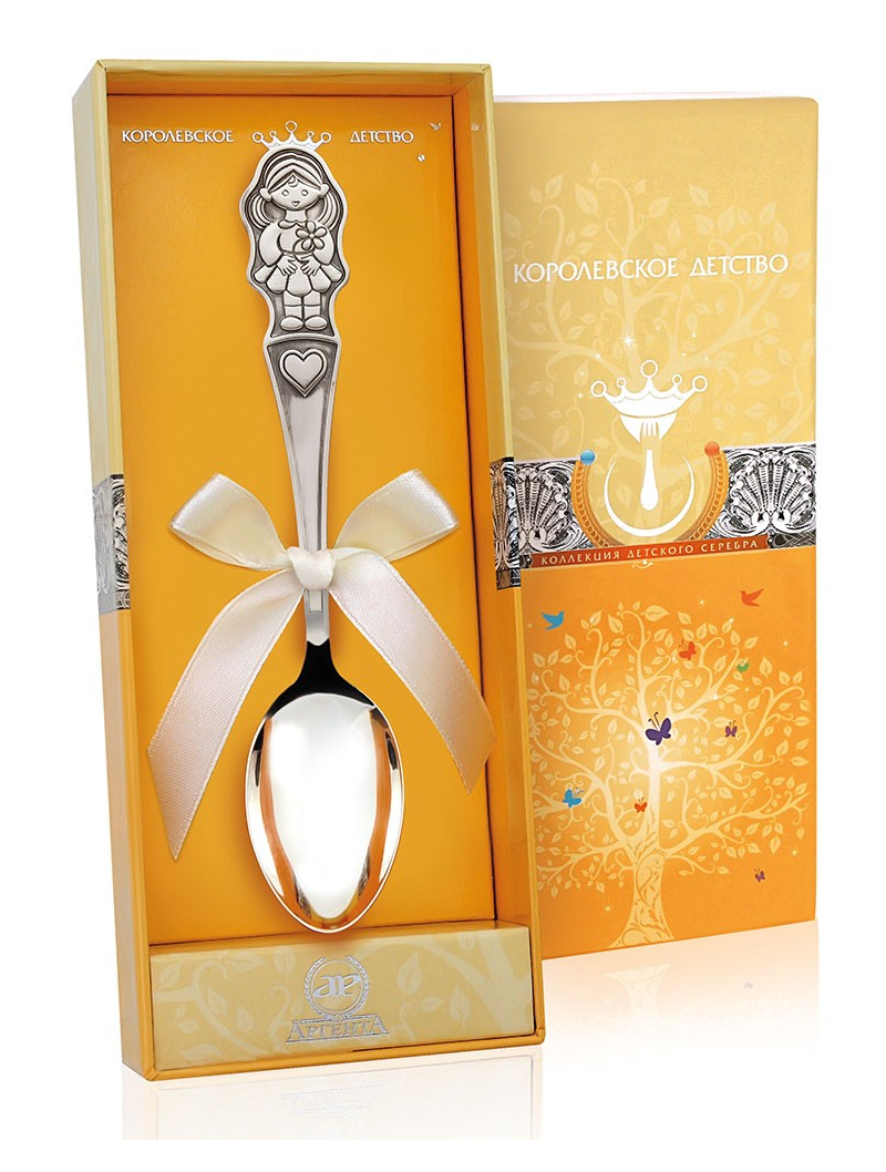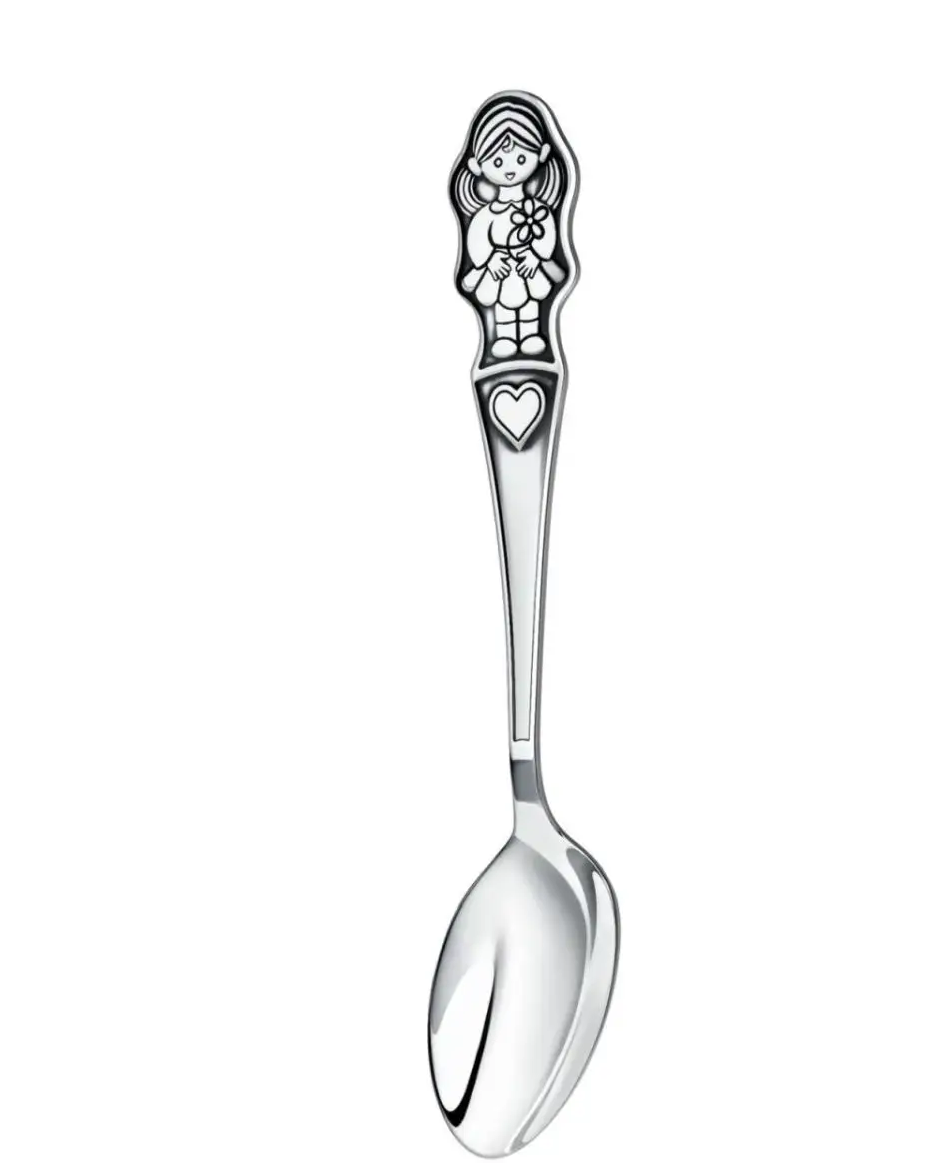 Серебряная детская ложка "Девочка". Длина – 14.5 см., ширина - 3.0 см. Артикул: CDL0007