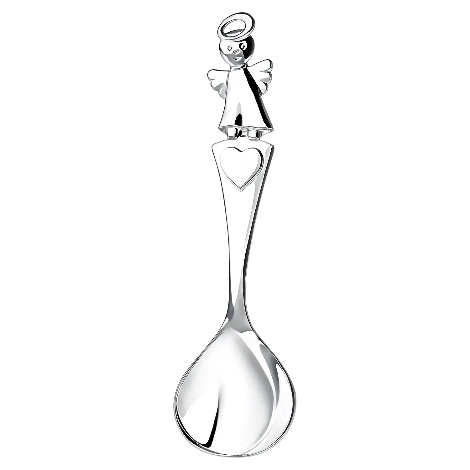 Серебряная детская ложка "Ангелочек" для кормления. Длина – 12.2 см., ширина - 3.8 см. Артикул: CDL0022