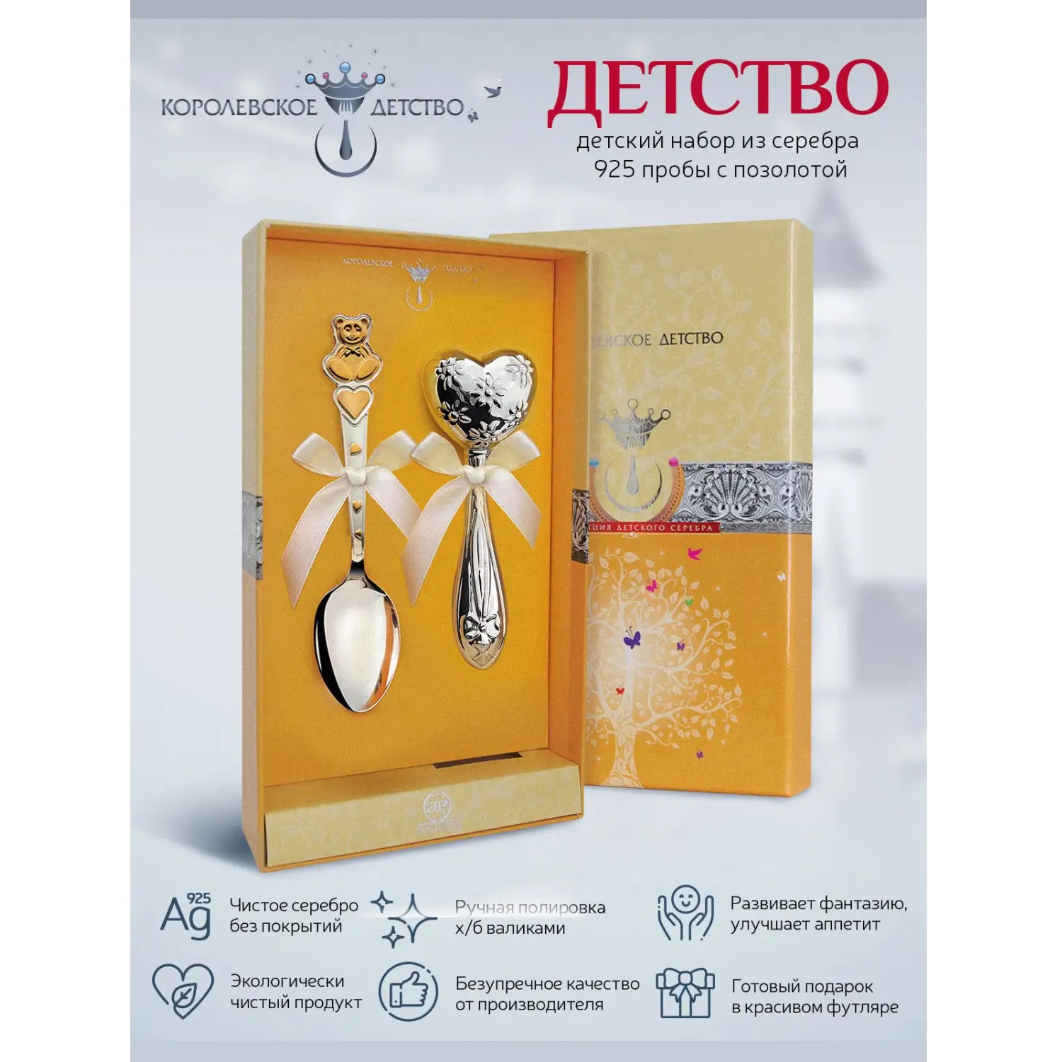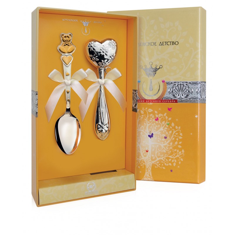 Серебряный набор «Детство» ложка, погремушка