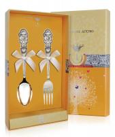 Коллекция КОРОЛЕВСКОЕ ДЕТСТВО - одна из самых широких и известных коллекций детского серебра в России. Она содержит множество очаровательных моделей серебряных ложек, вилок и ножей, погремушек и пустышек, поильников и кружек. Все детские серебряные приборы проходят строгий контроль качества. Экологическое серебро, произведённое непосредственно на фабрике, тщательная ручная полировка хлопковыми валиками делает изделия абсолютно безопасными для ребёнка. Благодаря дезинфицирующей функции серебра, регулярное использование серебряных приборов может поддержать естественный иммунитет организма и даже предотвратить некоторые из типичных детских болезней. Специалисты фабрики получили грант на применение сложной, но очень красивой техники гильоширования, которой пользовался известный Карл Фаберже. Это позволило создавать удивительно яркие и объемные изображения на изделиях. Коллекция полна милыми персонажами, которые станут для ребёнка верными друзьями.