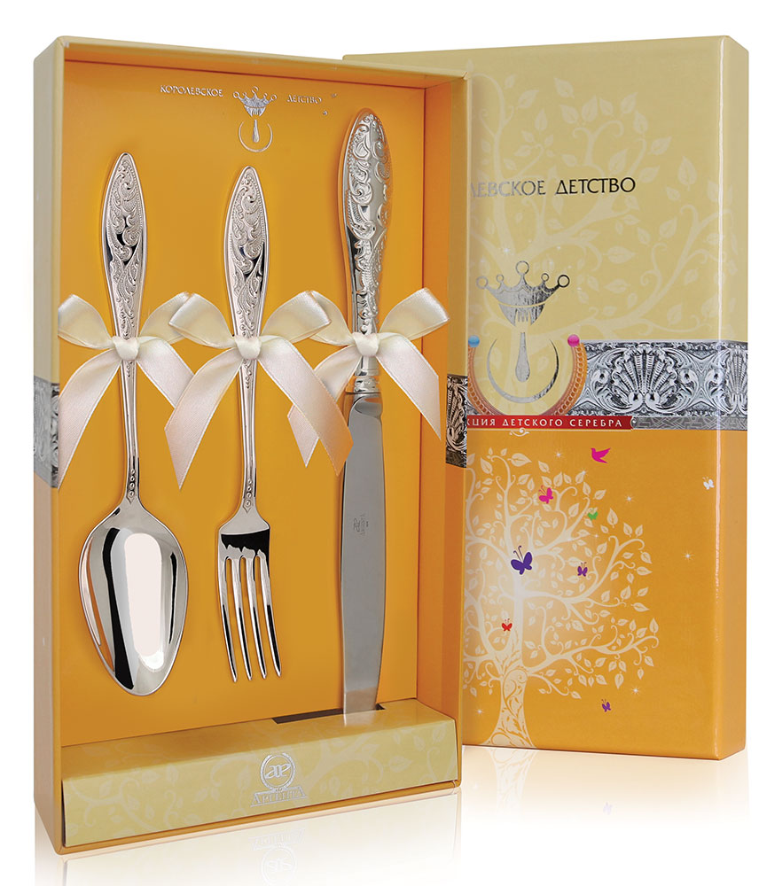 Серебряный набор десертный "Император" - это 3 предмета, которые могут стать началом в коллекции малыша. Каждый ребенок охотно любит пирожные и торты, для которых уважающий себя человек использует отдельные десертные приборы. Набор "Император" поможет приучить ребенка правильным манерам и этикету с детства. Рукоятки ложки, ножа и вилки украшены строгим античным узором, который придает столовым приборам особое изящество и аристократизм. Серебряный десертный набор - это восхитительный подарок для ребенка или подростка.