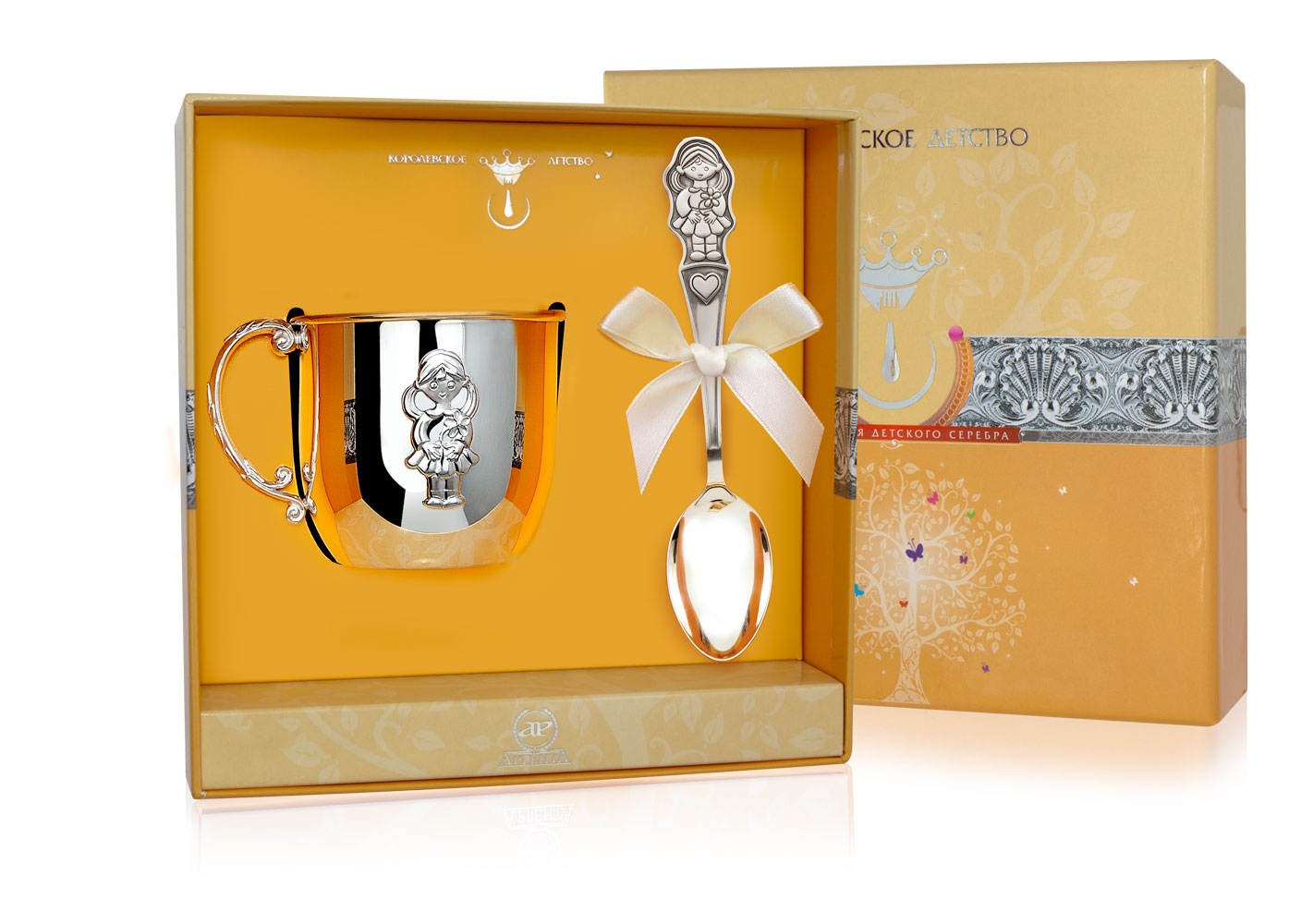 Серебряный набор "Девочка" кружка и ложка выполнен из драгоценного металла 925 пробы, что обеспечивает безопасное использование в силу антисептических свойств серебра. Оба предмета объединены в комплект благодаря одинаковым фигуркам девочки на боковой поверхности чашки и на рукоятке ложки. Изображение сердечка на ложке подчеркнёт вашу любовь, с которой выбран подарок для малышки. Набор упакован в красивую коробку жёлтого цвета, которую будет приятно вручить виновнице торжества.