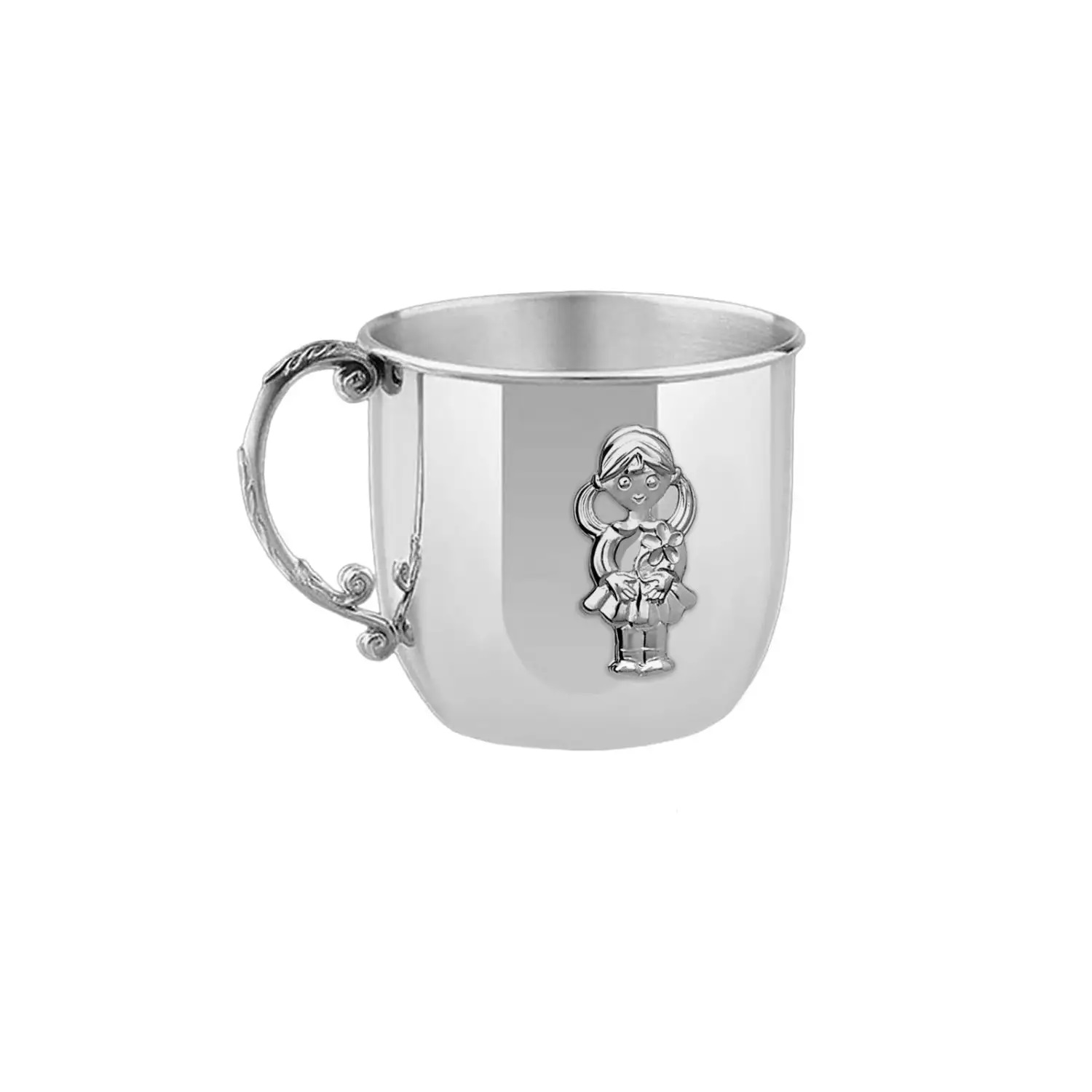 Серебряная детская кружка "Девочка" - 1 шт. Высота - 5.7 см., ширина - 6.6 см. Артикул: CDK0005