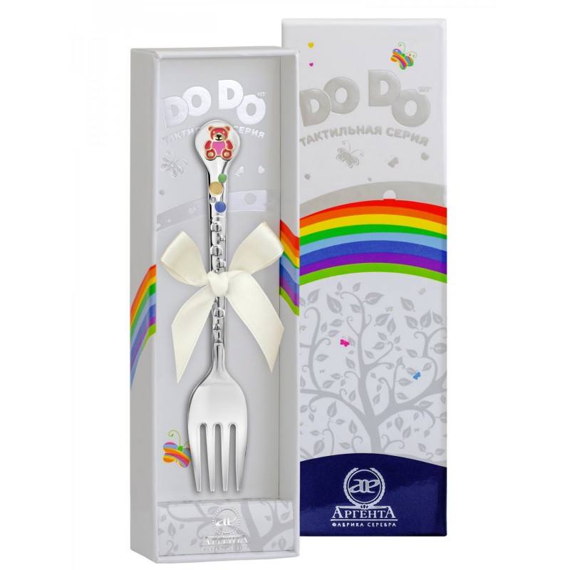 Детская тактильная вилка DODO «Медвежонок» с малиновой эмалью и позолотой