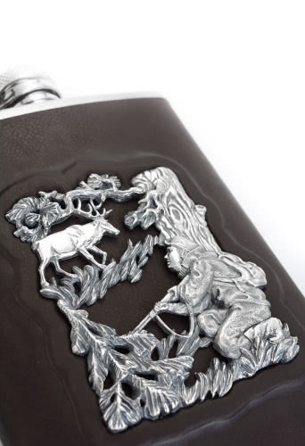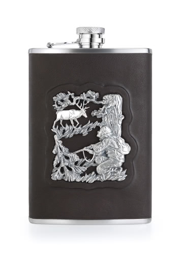 Фляжка с серебром "Охота" - 1 шт. Длина - 16,5 см., ширина - 9,5 см., высота - 2,4 см. Артикул: FLS0001