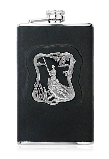 Фляжка «Рыбацкая» может являться как полезной вещью, сувениром и прекрасным полезным подарком. Изделие выполнено полностью вручную, что говорит о его эксклюзивности. Чехол из натуральная кожи сохранит прежний вид на долгие времена, внутренняя обработка — сталь. На фляге так же вручную нанесен серебряный рисунок, изображающий историю двух рыбаков в лодке. Устойчива к влаге и стиранию.