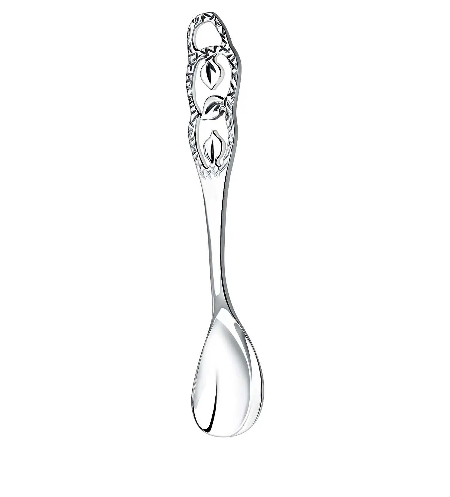 Кофейная ложка из серебра "Листопад". Длина - 8.8 см., ширина - 1.8 см. Артикул: KLS0012