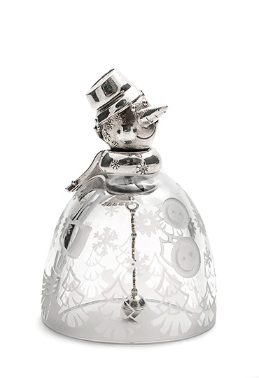 Колокольчик из серебра "Хрустальный снеговик" - 1 шт. Высота: 9,9 см. Ширина: 6,8 см. Артикул: ССК0007