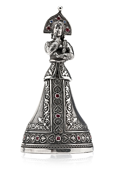 Колокольчик выполнен по мотивам русской народной сказки «Василиса Прекрасная». “В некотором царстве жил-был купец. Двенадцать лет жил он в супружестве, и родилась у него только одна дочь — Василиса Прекрасная.”