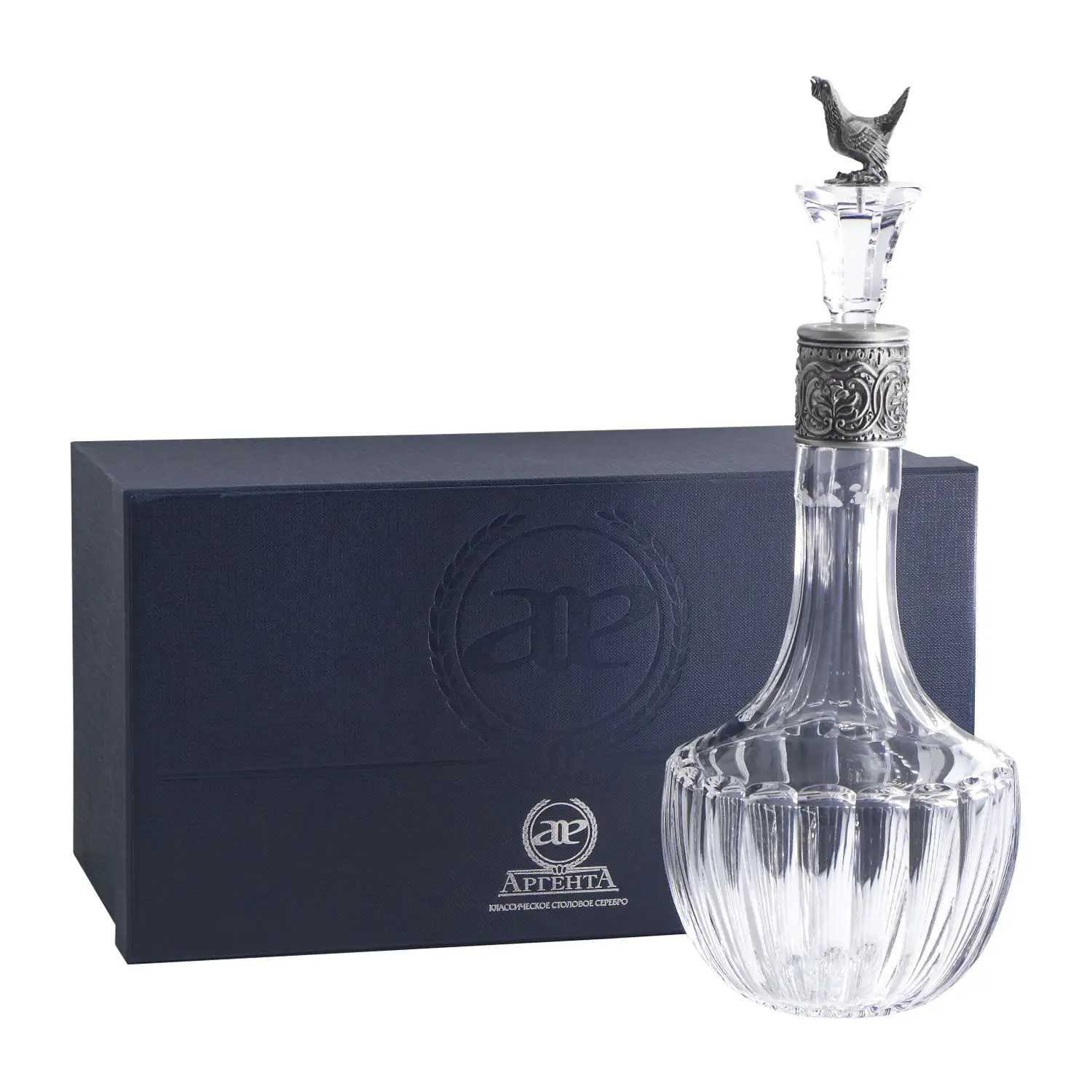 Графин для водки из серебра «Глухарь» с чернением