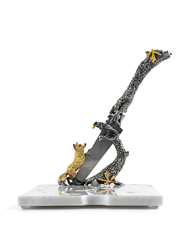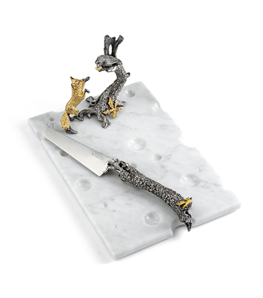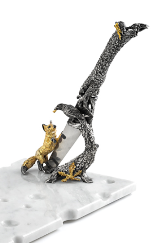 Доска с ножом для сыра с серебром "Ворона и лисица" - 1 шт. Артикул: SNS0005