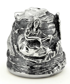 Серебряный напёрсток "Дюймовочка" является уникальным изделием, доступным только по предварительному заказу. Изготовленный из серебра высшей пробы вручную, он украсит вашу коллекцию напёрстков. Поверхность напёрстка рельефная, выполнена с применением чернения. Изюминкой служит крошечная фигурка Дюймовочки, выполненная с большой степенью детализации. Данный аксессуар прекрасно подойдёт не только для уже состоявшегося коллекционера, но и может положить начало новой коллекции, если вы преподнесёте его в дар кому-то из ваших знакомых или близких. Напёрсток "Дюймовочка" продаётся в фирменном подарочном футляре.