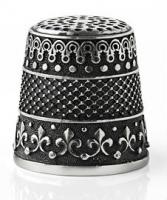Серебряный напёрсток "Лилия" - восхитительная изящная вещица, способная быть как украшением на полке, так и удобным аксессуаром в шкатулке для рукоделия, которым будут часто пользоваться. Изготовленный из драгоценного металла высшей пробы, напёрсток кажется ажурным благодаря тому, что выступающие рельефные детали узора из обычного серебра имеют фон из серебра чернёного. Нижний ряд узора выполнен в виде королевских лилий, что и дало название изделию. Напёрсток продаётся в элегантном фирменном подарочном футляре, благодаря чему не затеряется в кармане или сумке, и может послужить чудесным подарком родственнице, подруге или коллеге вне зависимости от повода.