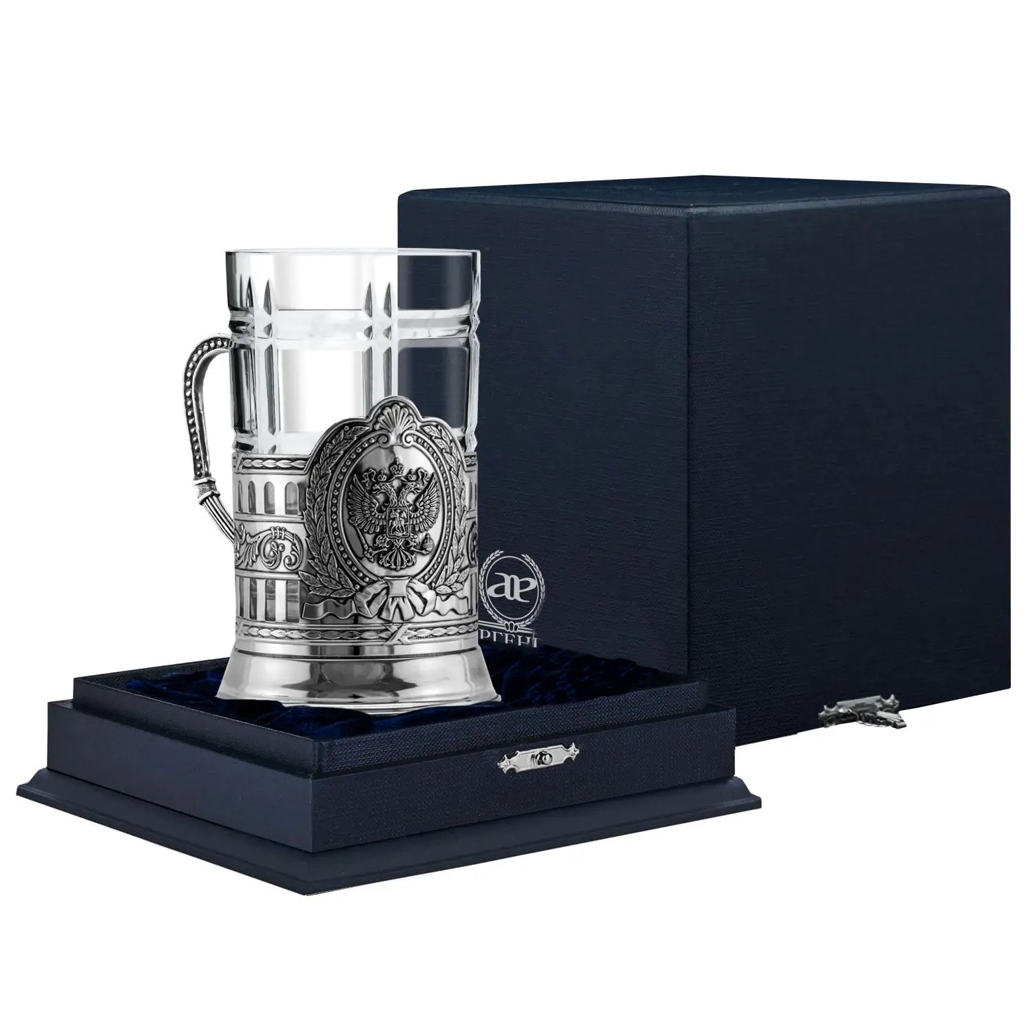 Подстаканник "Герб России" из серебра в футляре