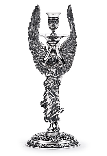 Серебряный подсвечник "Летящий ангел". Высота - 12.2 см., ширина - 6.3 см. Артикул: PSS0004