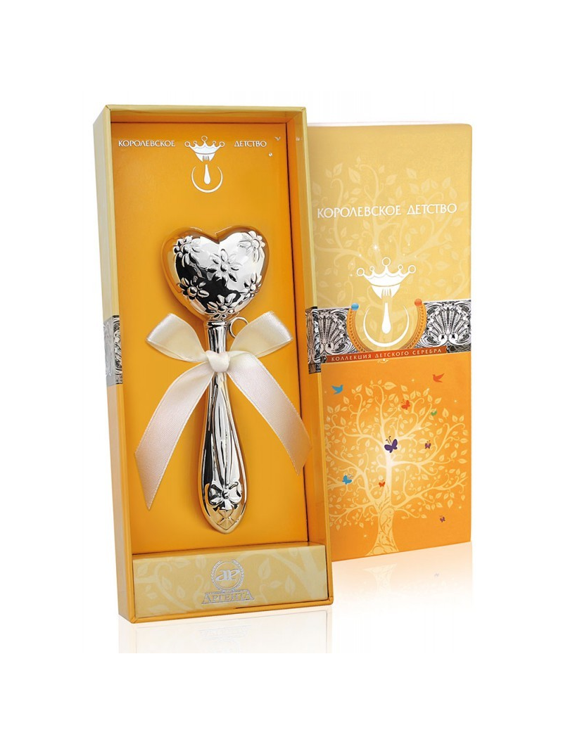 Погремушка из серебра «Сердце с цветами»