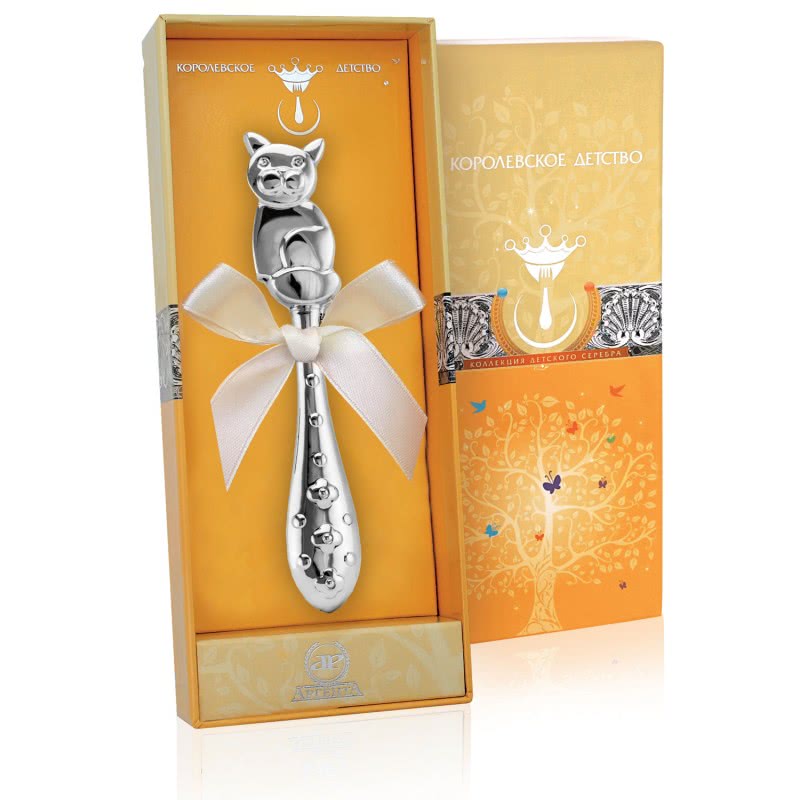 Серебряная погремушка «Котик»