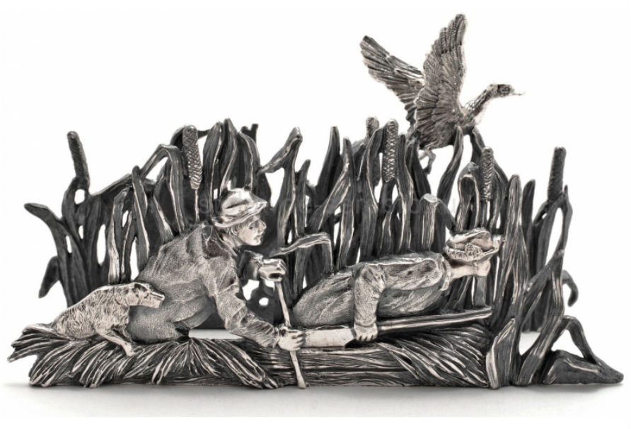 Салфетница из серебра «Охота на уток»