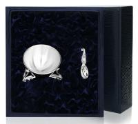Серебряная солонка "Вьюнок" с ложкой. Высота - 2 см., ширина - 4 см. (Длина ложки - 3 см., ширина - 0.9 см.) Артикул: SPC0004