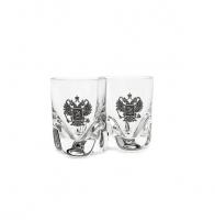 Каждая стопка, вмещающая 60 миллилитров, украшена гербом России ручной работы.