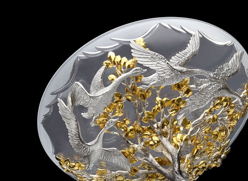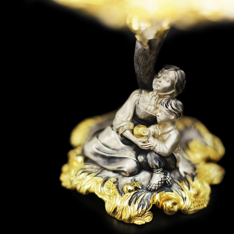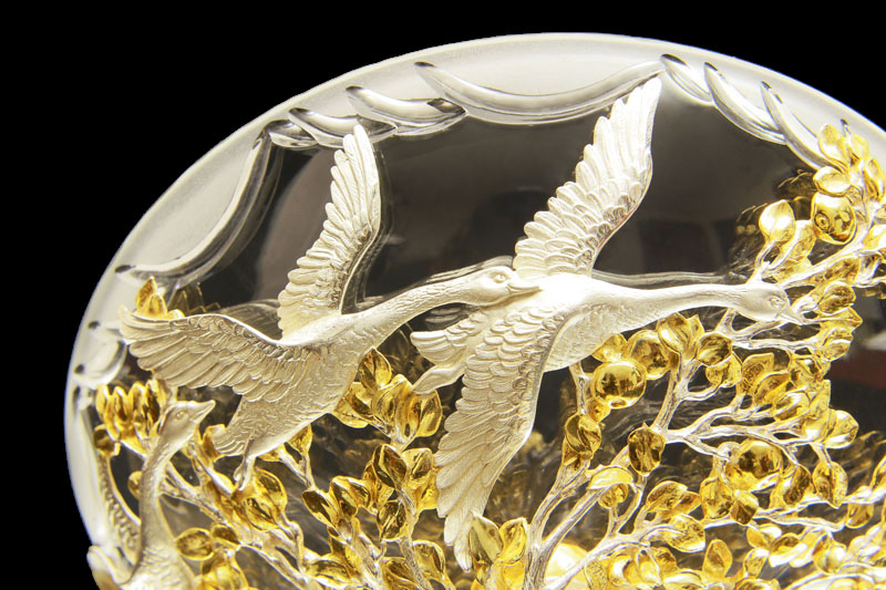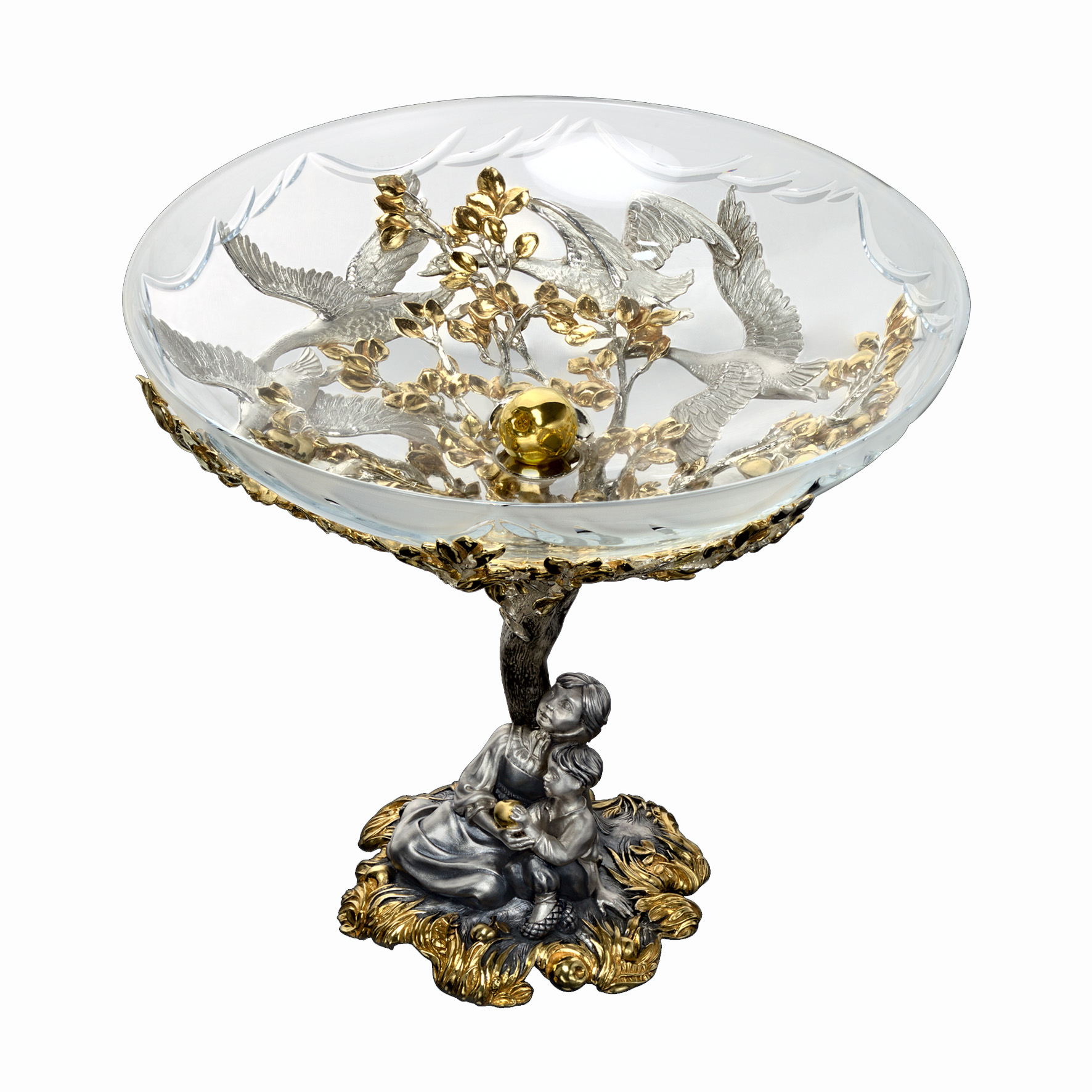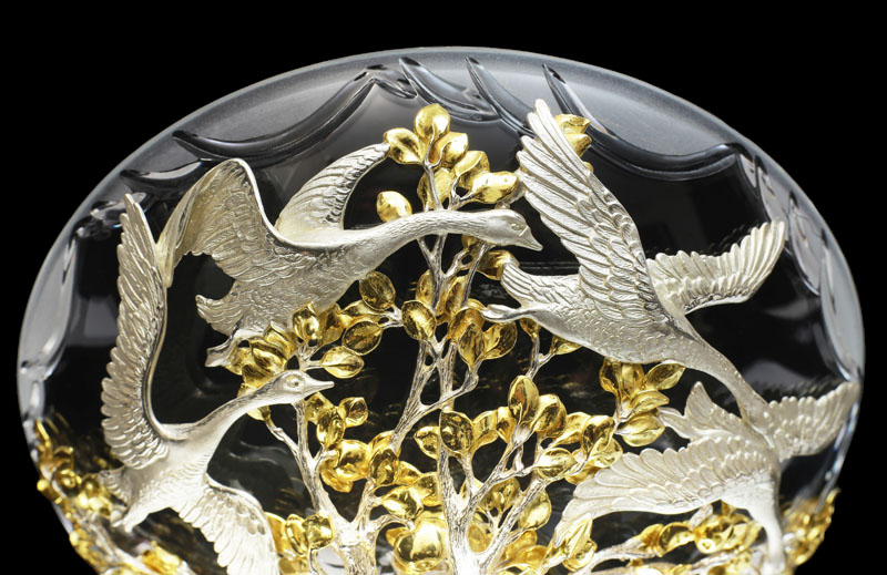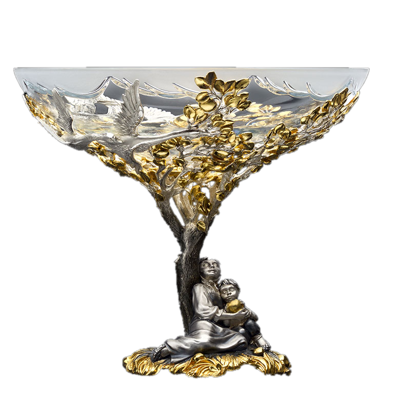 Ваза с серебром "Гуси-лебеди" - 1 шт. Высота - 13 см., ширина - 15,5 см. Артикул: SRV0007