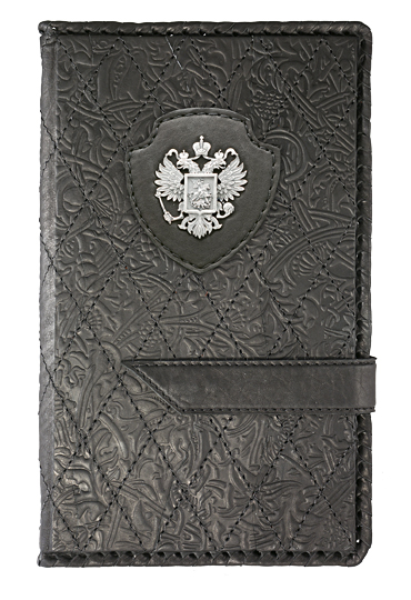 Визитница "Держава" - это отличный выбор в качестве подарка для бизнесмена или просто делового человека. Изделие выполнено из кожи крупного рогатого скота и украшено растительными узорами по всей поверхности, что придает предмету волшебный и роскошный вид. В центре композиции выполнено серебряное изображение двуглавого орла - символа и герба Российской Федерации. Прозрачные страницы для визиток имеют кольцевидное крепление, поэтому их легко можно менять местами. Визитница "Держава" упакована в элегантный подарочный футляр и в практичную транспортировочную коробку.