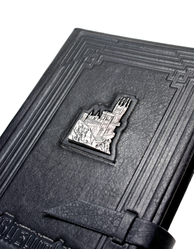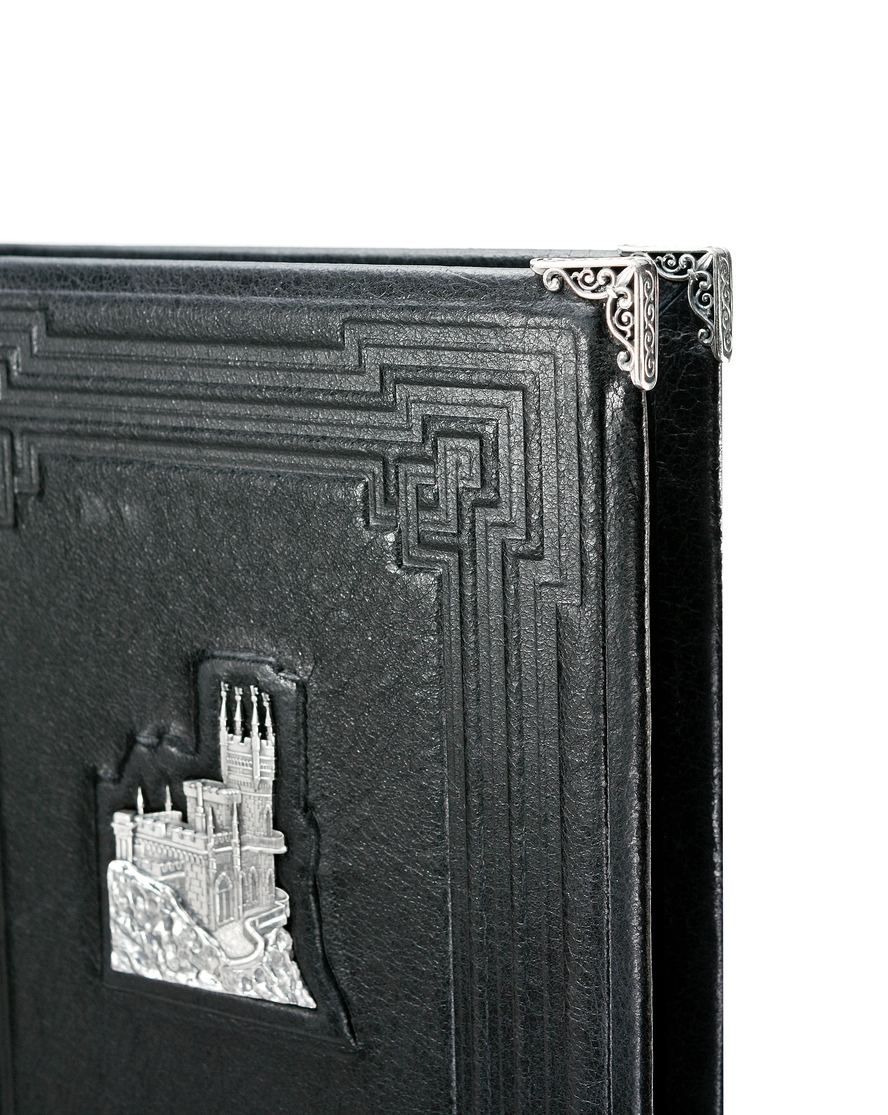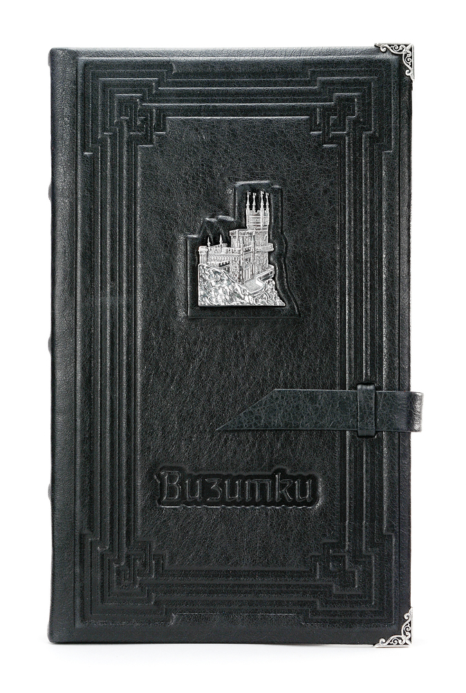 Визитнца "Крым" - это изделие представительского класса. Оно выполнено из качественной телячьей кожи и украшено объектом культурного наследия полуострова Крым - дворцом "Ласточкино гнездо", которое расположено в одном из самых романтичных мест планеты. Украшение выполнено из серебра 925 пробы, что придает визитнице особенную роскошь. Страницы для карточек и визиток прозрачны и крепятся на кольцевидный замок, что обеспечивает легкую работу. На обложке располагаются клейма пробирной и мастерской палат. Визитница упакована в классический подарочный футляр и сопровождается транспортировочной коробкой для удобства наших покупателей.
