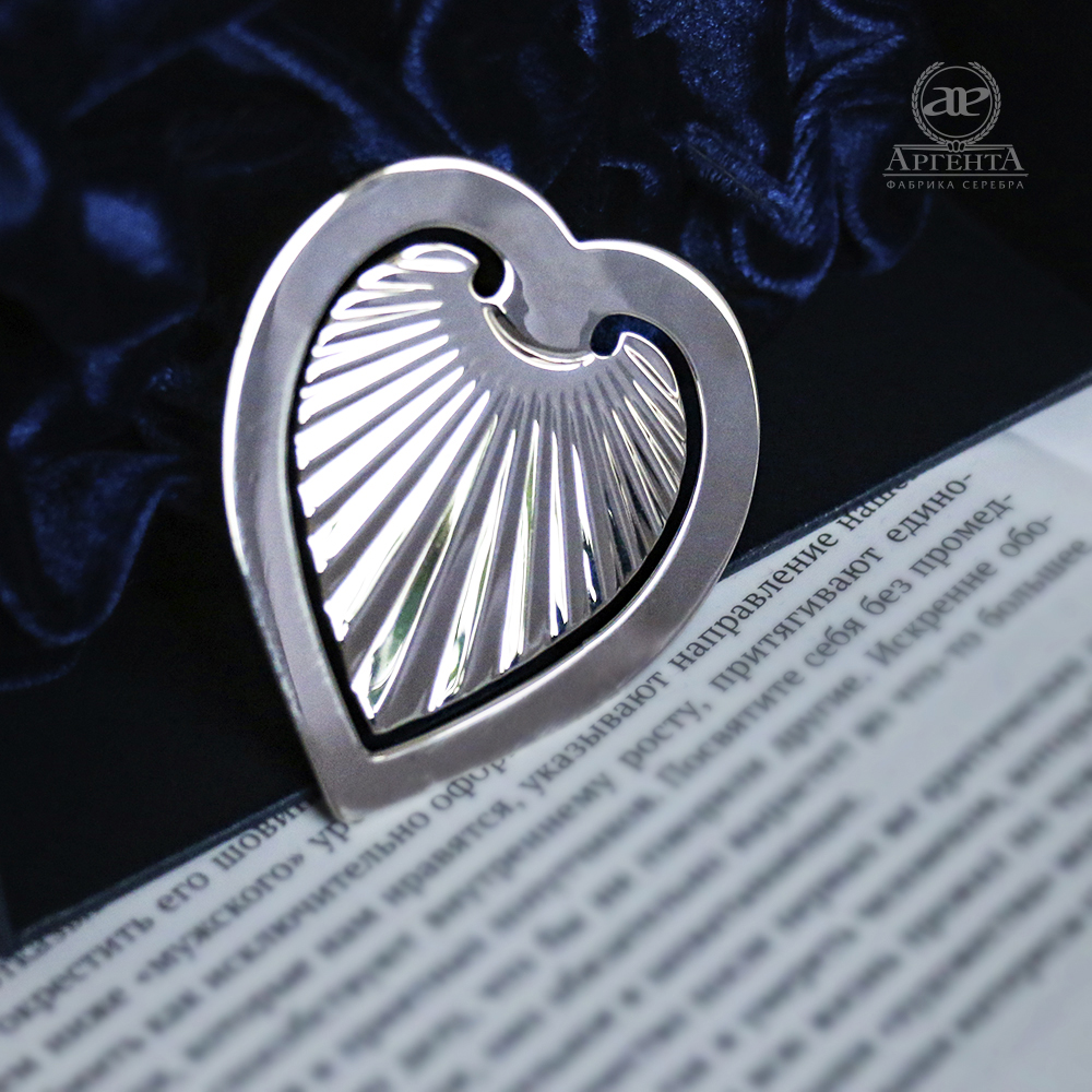 Серебряная закладка для книг «Сердечко»
