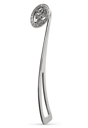 Серебряная закладка для книг "Империя" выполнена из серебра высшей пробы вручную. Аксессуар представляет собой удлинённую серебряную пластину, увенчанную обрамлённой в венок фигурой двуглавого орла - символа царской империи. Великолепный сувенир может быть использован не только в книге, но и в ежедневнике или любой другой записной книжке. Закладка подходит как в качестве подарка друзьям, так и деловым партнёрам и призвана напоминать о величии нашей страны. Изделие упаковано в подарочный футляр.