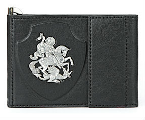 Серебряный зажим для денег "Георгий Победоносец" - 1шт. Длина - 11.4 см., ширина - 8.6 см., высота - 1.6 см. Артикул: CZD0007