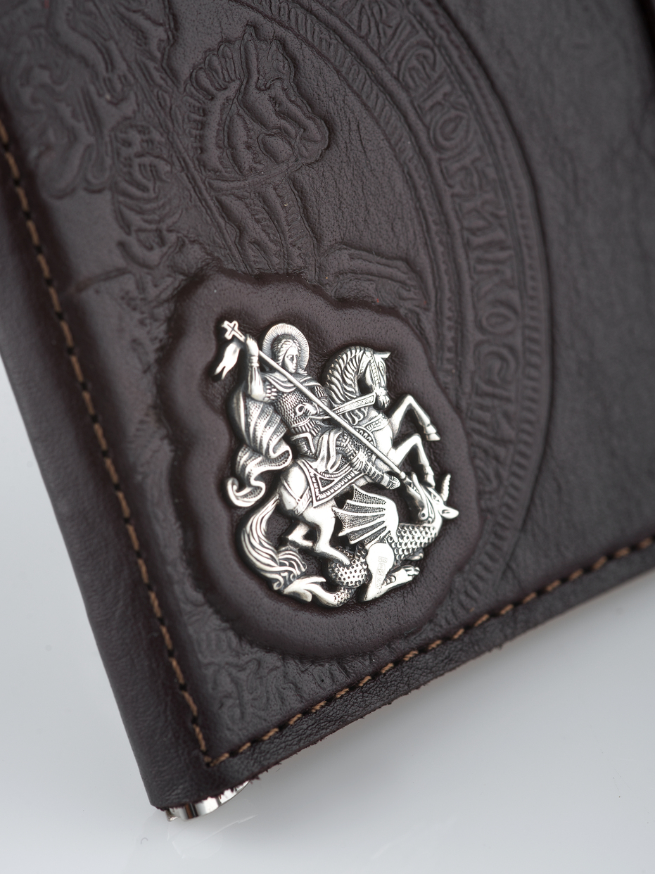 Серебряный зажим для денег "Георгий Победоносец" - 1шт. Длина - 11.4 см., ширина - 8.6 см., высота - 1.6 см. Артикул: CZD0007