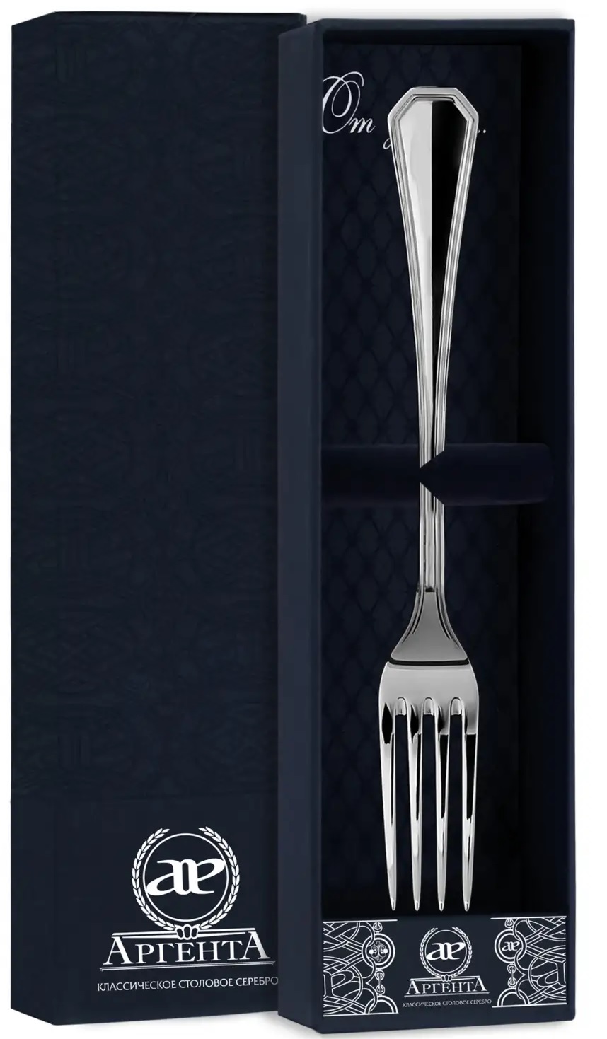 Столовая вилка из серебра "Элегант". Длина - 20 см., ширина - 2.5 см. Артикул: DVS0010