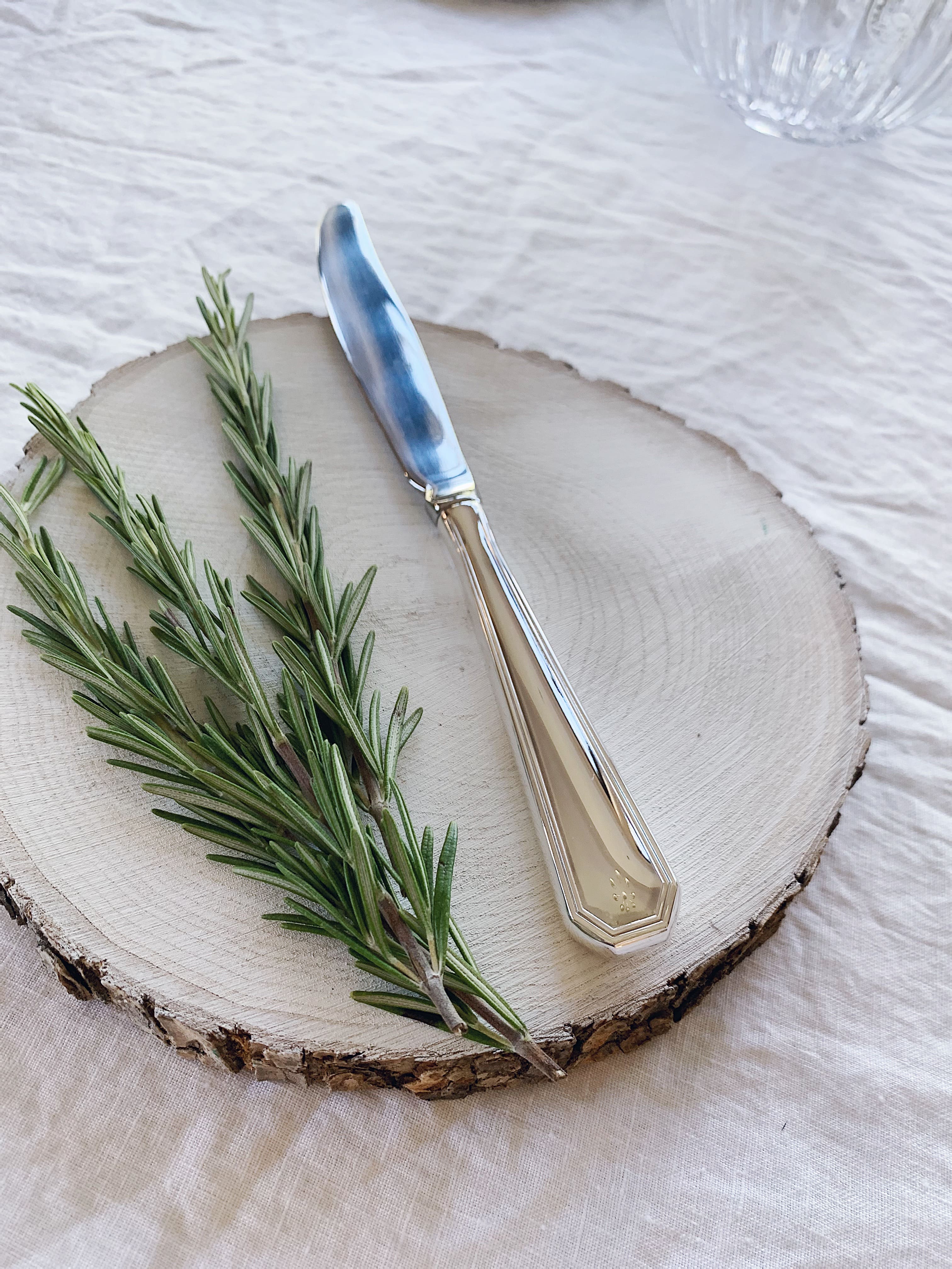 Столовый нож из серебра "Элегант". Длина - 24 см., ширина - 2 см. Артикул: DNS0011